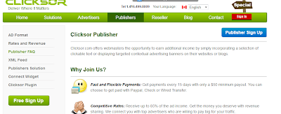 1. buka Website clicksor DISINI setelah muncul klik tulisan Publisher seperti dibawah ini :